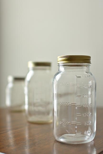 The manual also highlights the importance of keeping jar rims clean and free of food residue to ensure a proper seal. Properly prepared jars are fundamental to successful preservation and preventing food spoilage.